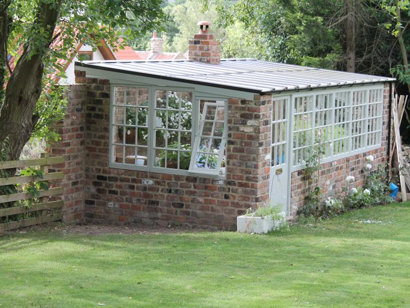 Outdoors: Own outdoor garden with table and seating for two. Large guest garden.