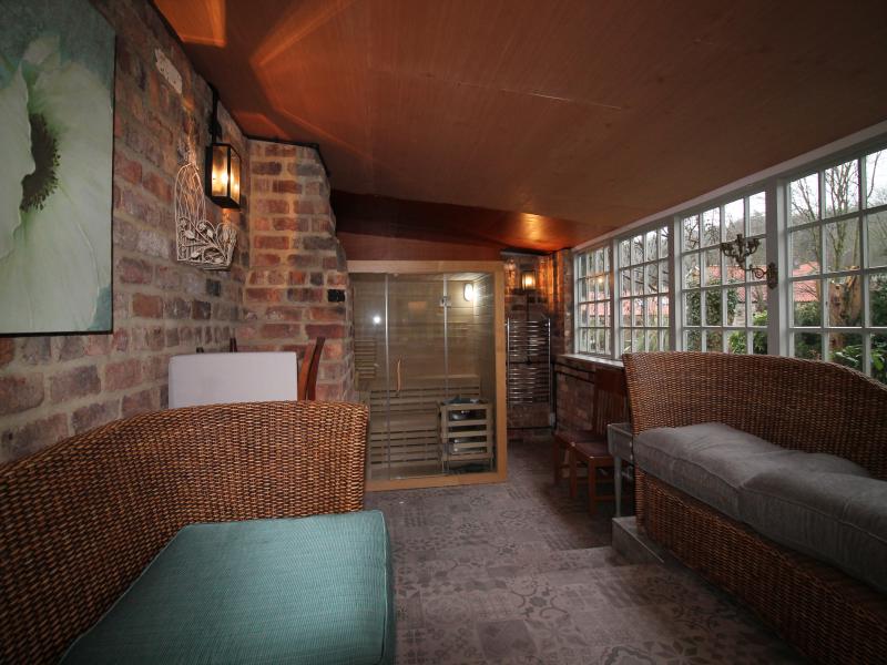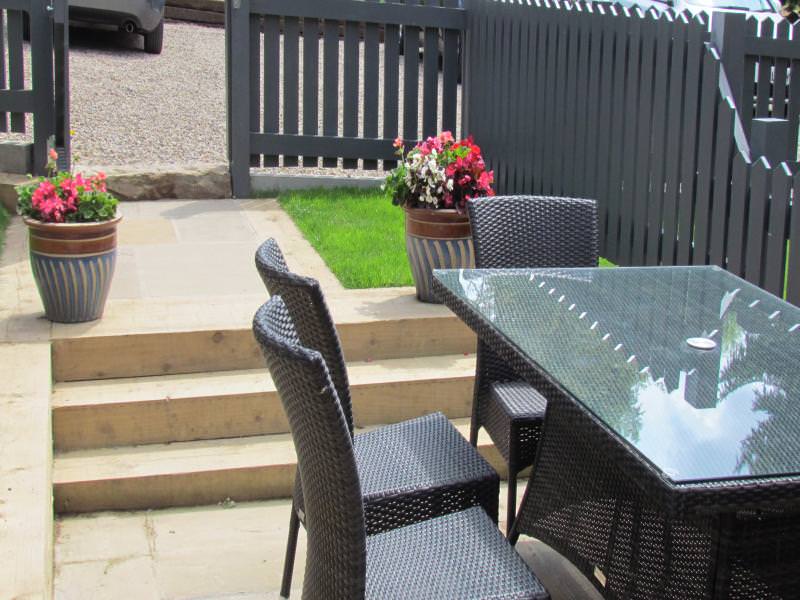 Outdoors: Own private garden, outdoor seating for four, and large guest garden.